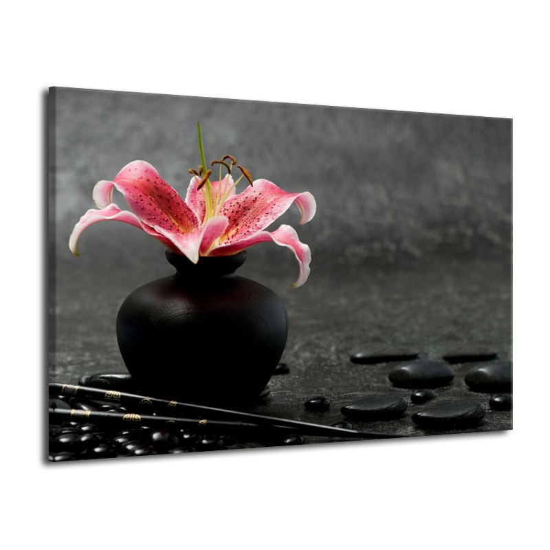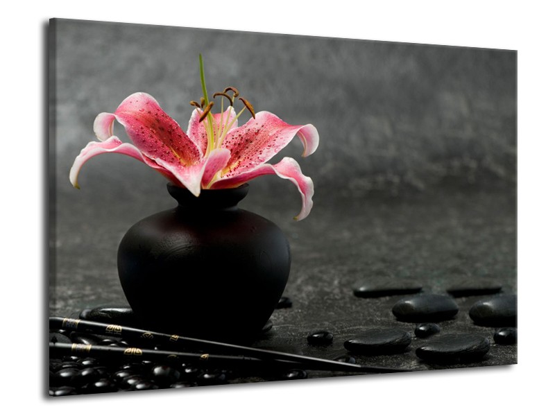 Canvas Schilderij Bloem, Modern | Zwart, Roze, Grijs | 70x50cm 1Luik