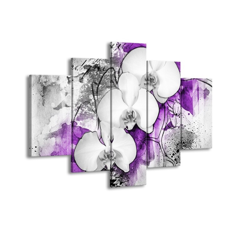 Canvas Schilderij Bloem, Orchidee | Grijs, Paars, Wit | 150x105cm 5Luik