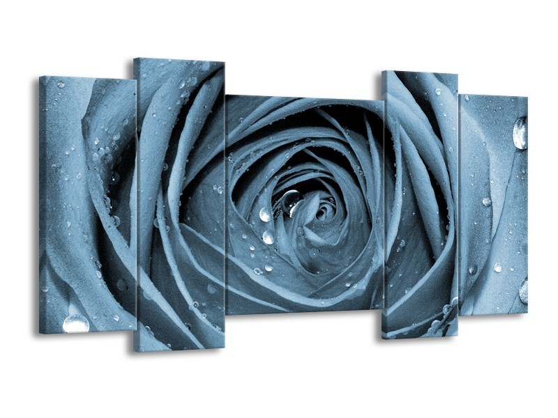 Canvas Schilderij Bloem, Roos | Blauw | 120x65cm 5Luik
