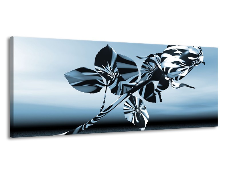 Canvas Schilderij Bloem, Roos | Blauw, Zilver | 145x58cm 1Luik