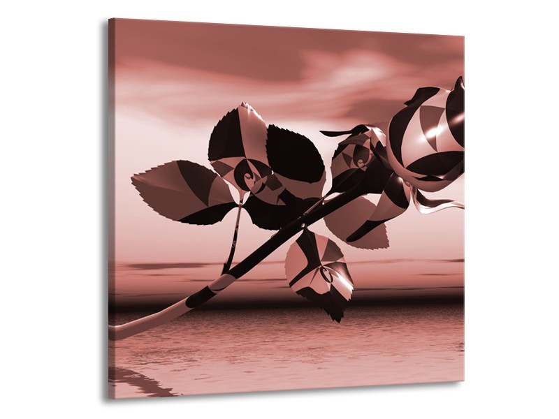 Canvas Schilderij Bloem, Roos | Bruin, Rood | 70x70cm 1Luik