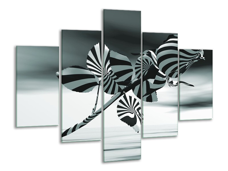 Canvas Schilderij Bloem, Roos | Grijs | 100x70cm 5Luik