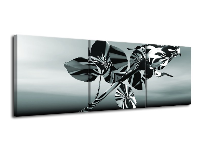 Canvas Schilderij Bloem, Roos | Grijs | 120x40cm 3Luik