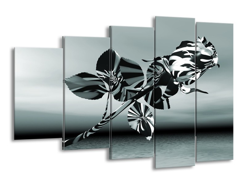 Canvas Schilderij Bloem, Roos | Grijs | 150x100cm 5Luik
