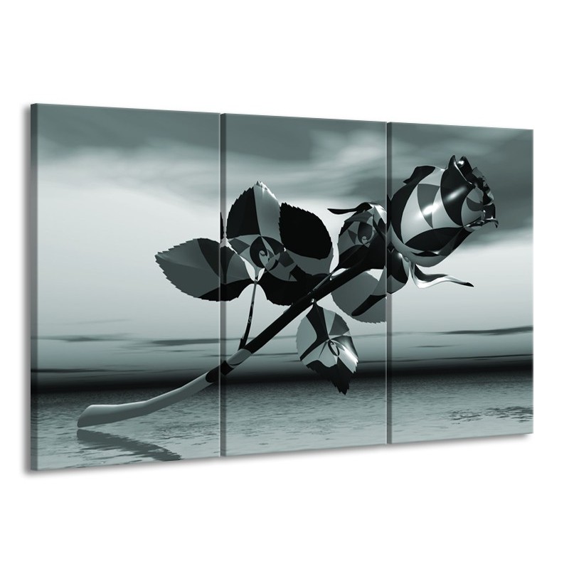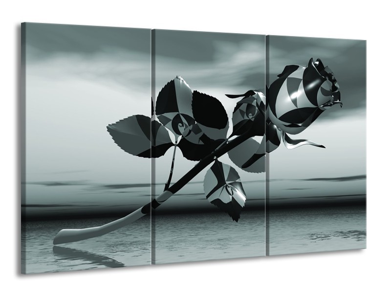 Canvas Schilderij Bloem, Roos | Grijs | 165x100cm 3Luik