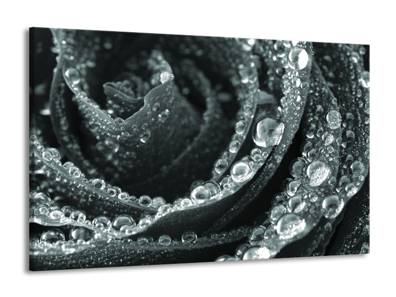 Canvas Schilderij Bloem, Roos | Grijs, Groen | 140x90cm 1Luik