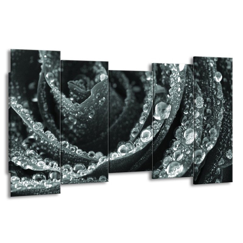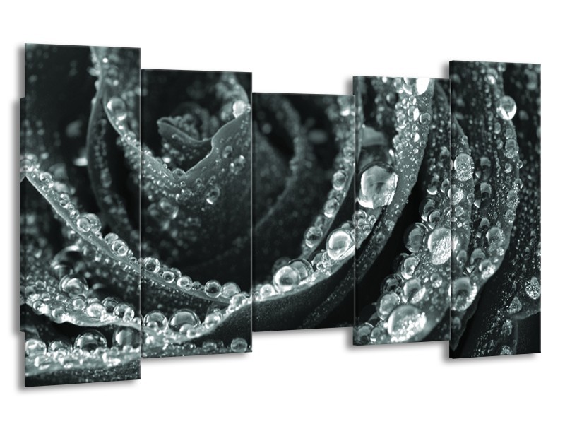 Canvas Schilderij Bloem, Roos | Grijs, Groen | 150x80cm 5Luik