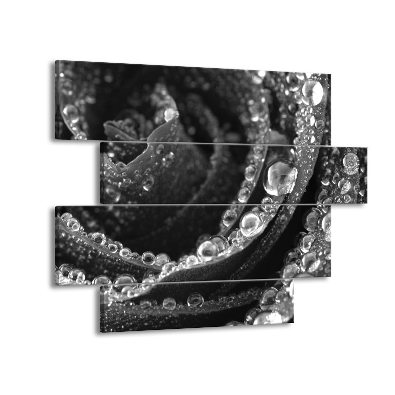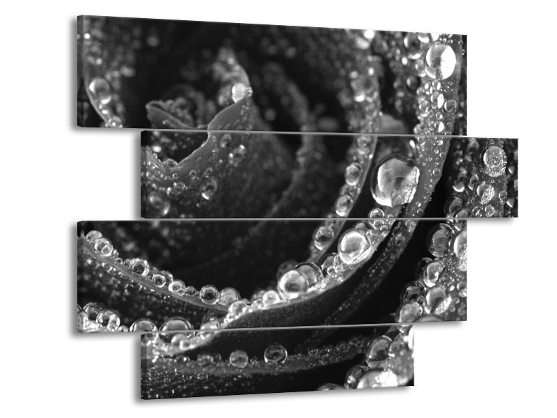 Canvas Schilderij Bloem, Roos | Grijs, Zwart | 115x85cm 4Luik