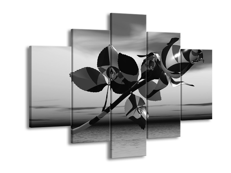 Canvas Schilderij Bloem, Roos | Grijs, Zwart | 150x105cm 5Luik