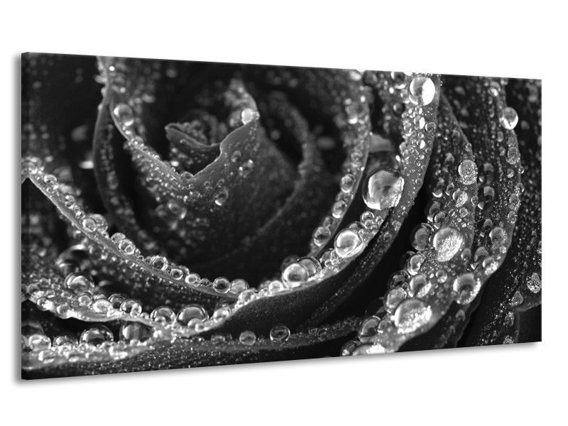 Canvas Schilderij Bloem, Roos | Grijs, Zwart | 170x90cm 1Luik