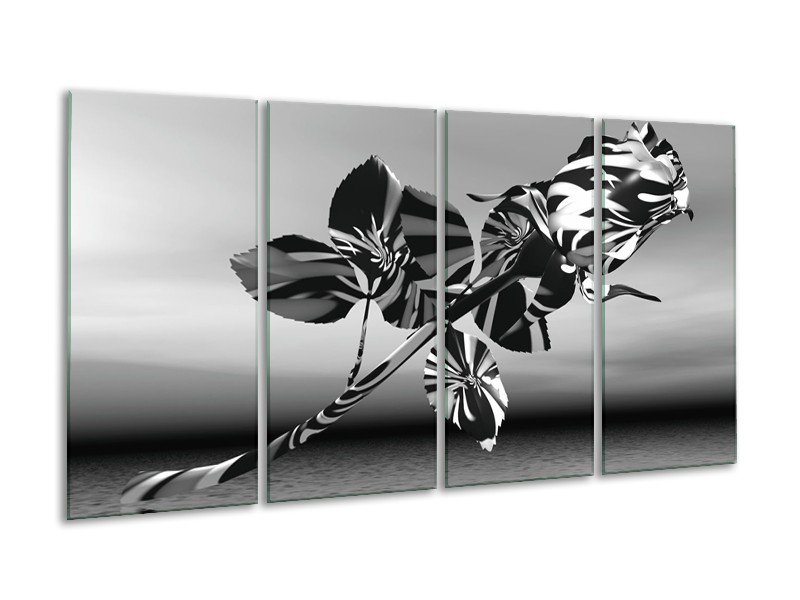 Canvas Schilderij Bloem, Roos | Grijs, Zwart, Wit | 160x80cm 4Luik