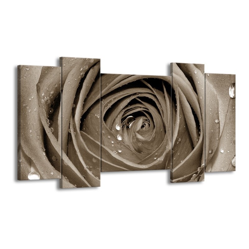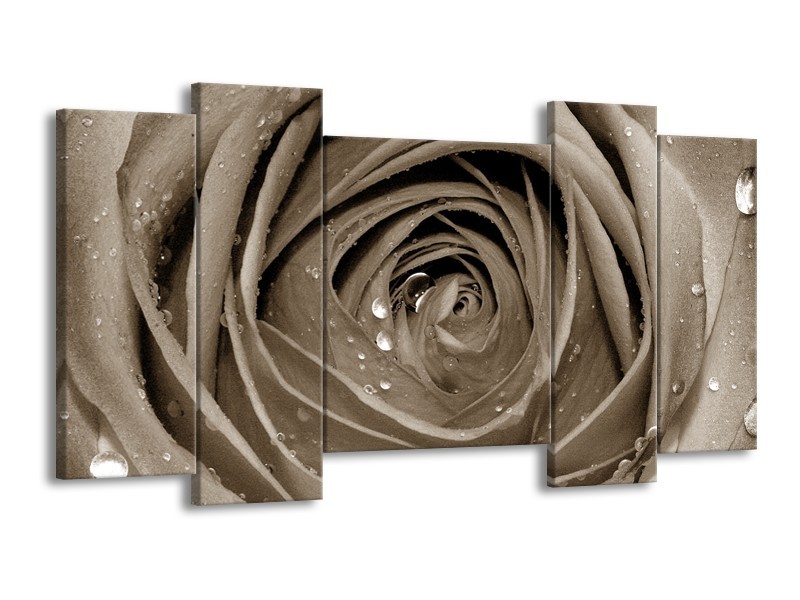 Canvas Schilderij Bloem, Roos | Sepia | 120x65cm 5Luik