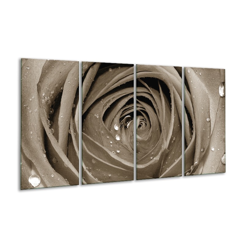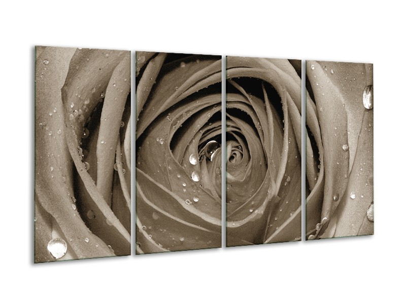 Canvas Schilderij Bloem, Roos | Sepia | 160x80cm 4Luik