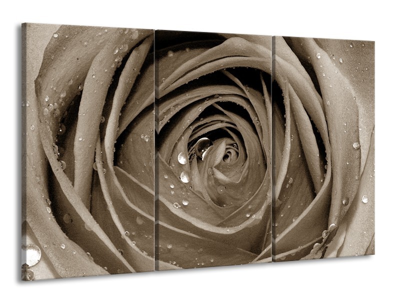 Canvas Schilderij Bloem, Roos | Sepia | 165x100cm 3Luik