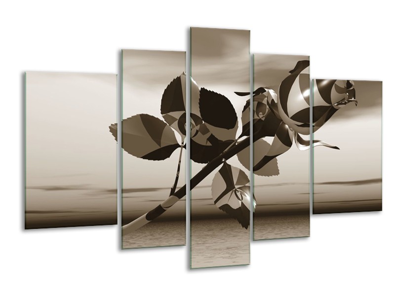 Canvas Schilderij Bloem, Roos | Sepia | 170x100cm 5Luik