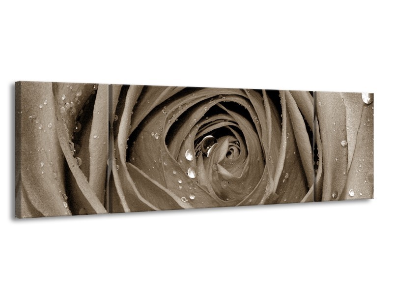 Canvas Schilderij Bloem, Roos | Sepia | 170x50cm 3Luik