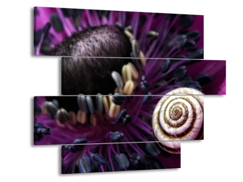 Canvas Schilderij Bloem, Schelp | Paars, Roze, Crème | 115x85cm 4Luik