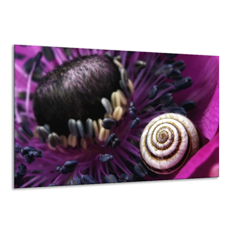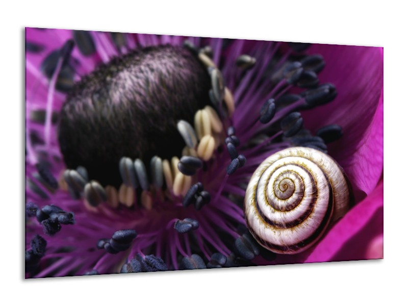 Canvas Schilderij Bloem, Schelp | Paars, Roze, Crème | 120x70cm 1Luik