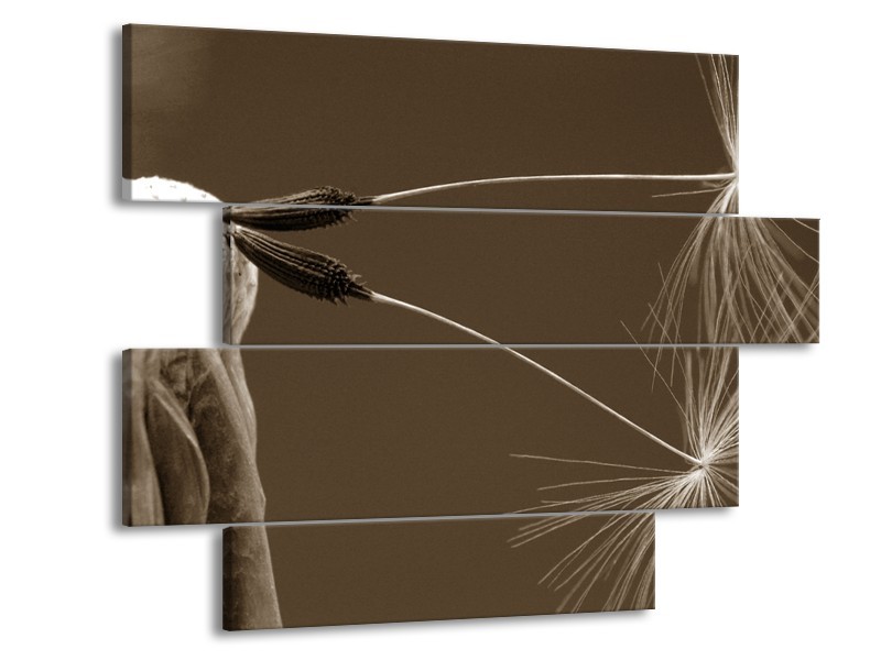 Canvas Schilderij Bloem | Sepia | 115x85cm 4Luik