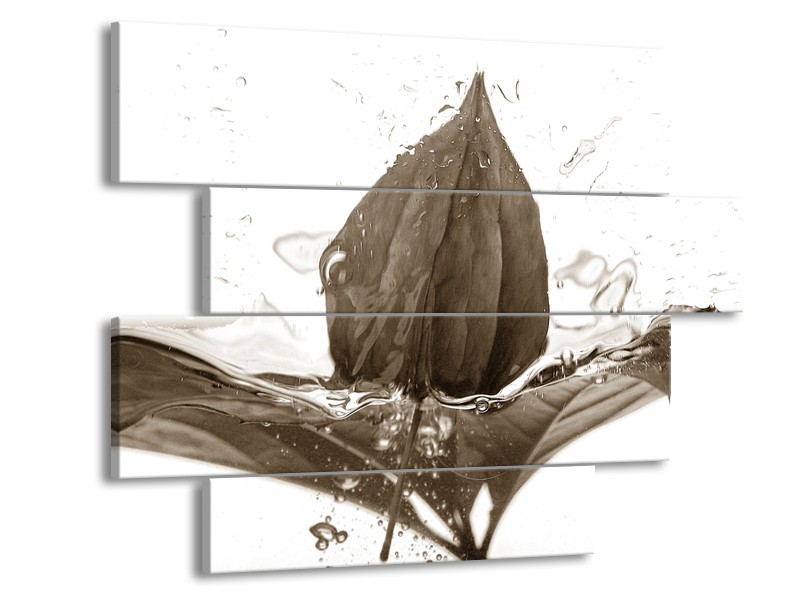 Canvas Schilderij Bloem | Sepia | 115x85cm 4Luik