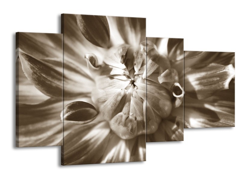 Canvas Schilderij Bloem | Sepia | 120x75cm 4Luik