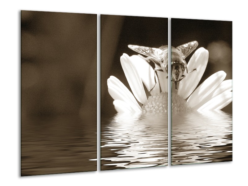 Canvas Schilderij Bloem | Sepia | 120x80cm 3Luik