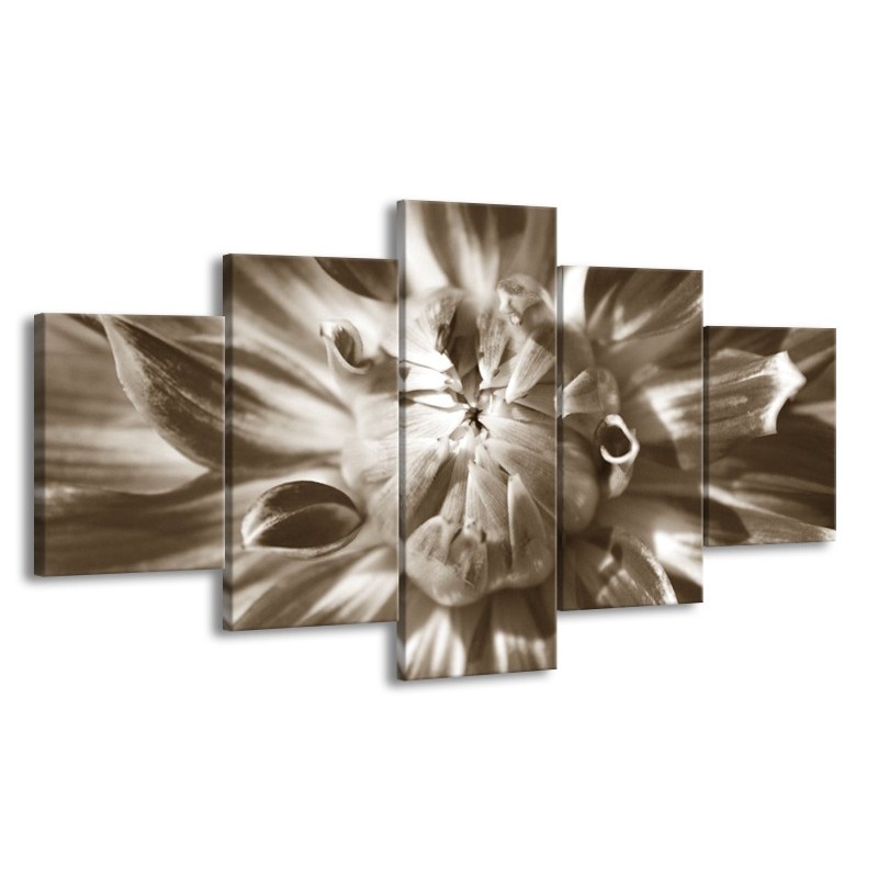 Canvas Schilderij Bloem | Sepia | 150x80cm 5Luik