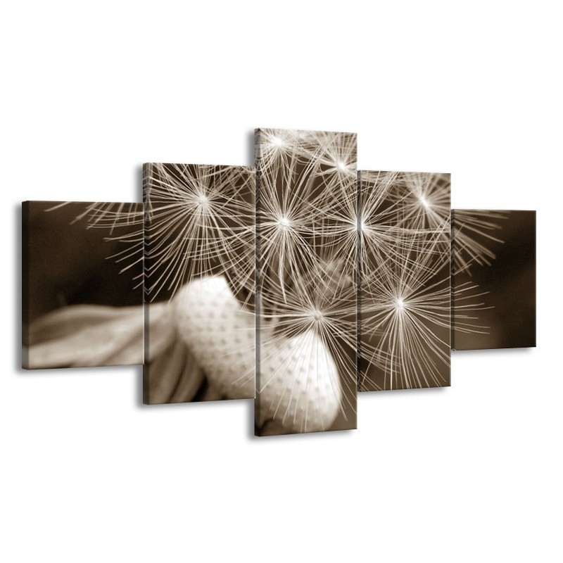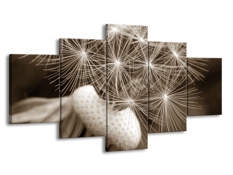 Canvas Schilderij Bloem | Sepia | 150x80cm 5Luik