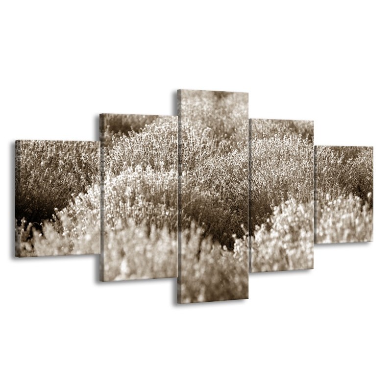 Canvas Schilderij Bloem | Sepia | 150x80cm 5Luik