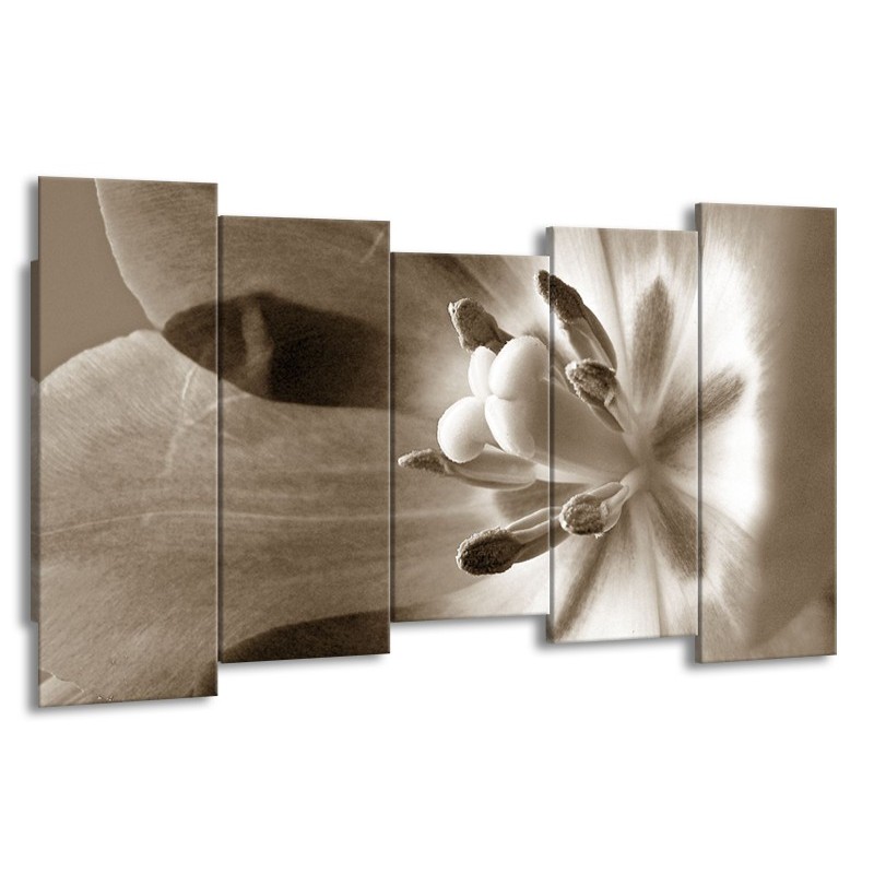 Canvas Schilderij Bloem | Sepia | 150x80cm 5Luik