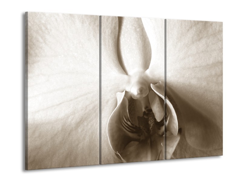 Canvas Schilderij Bloem | Sepia | 60x90cm 3Luik