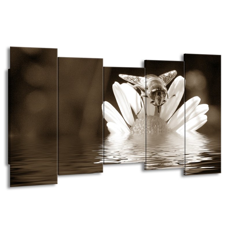 Canvas Schilderij Bloem | Sepia, Bruin | 150x80cm 5Luik