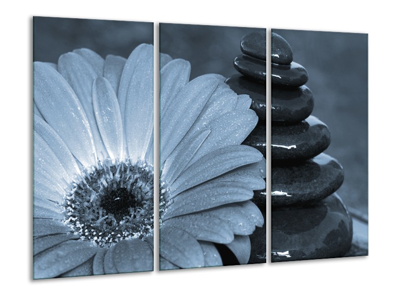 Canvas Schilderij Bloem, Stenen | Blauw, Grijs | 120x80cm 3Luik