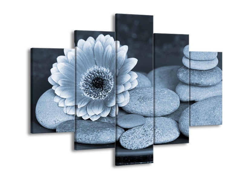 Canvas Schilderij Bloem, Stenen | Blauw, Grijs | 150x105cm 5Luik