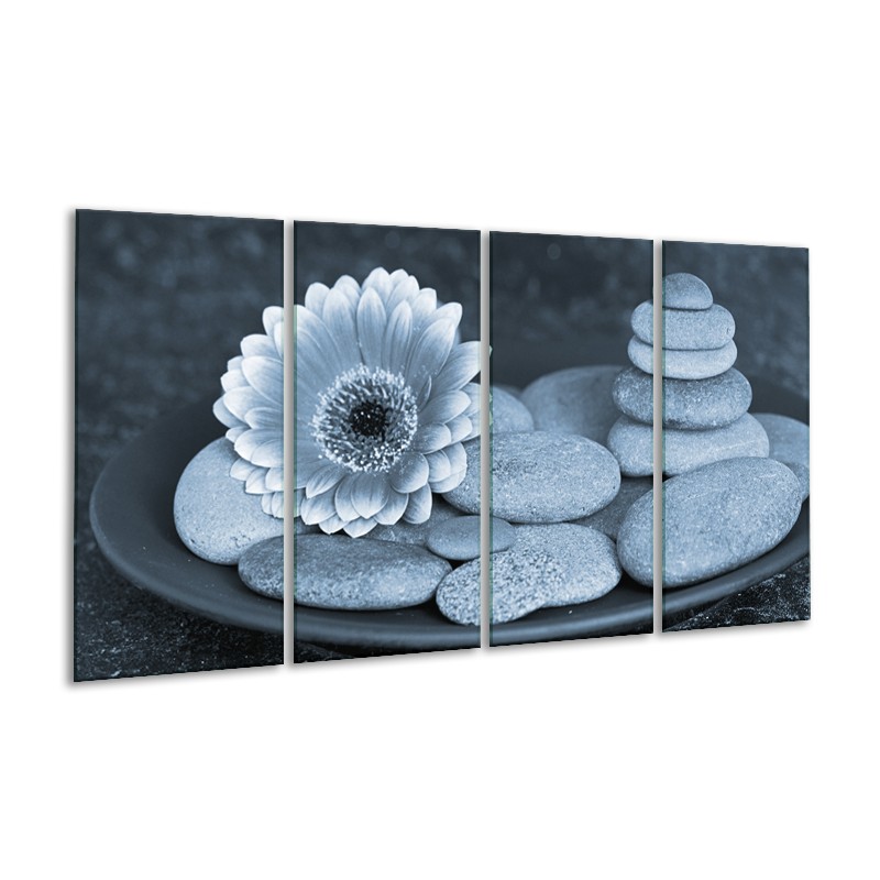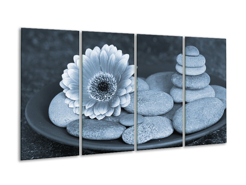 Canvas Schilderij Bloem, Stenen | Blauw, Grijs | 160x80cm 4Luik