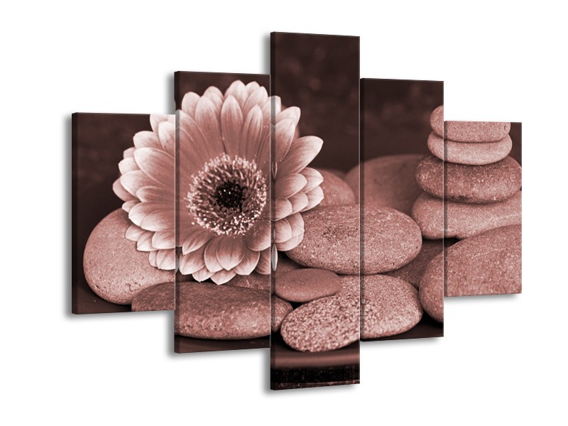 Canvas Schilderij Bloem, Stenen | Bruin, Rood | 150x105cm 5Luik