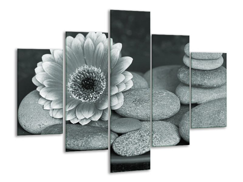 Canvas Schilderij Bloem, Stenen | Grijs, Groen, Zwart | 100x70cm 5Luik