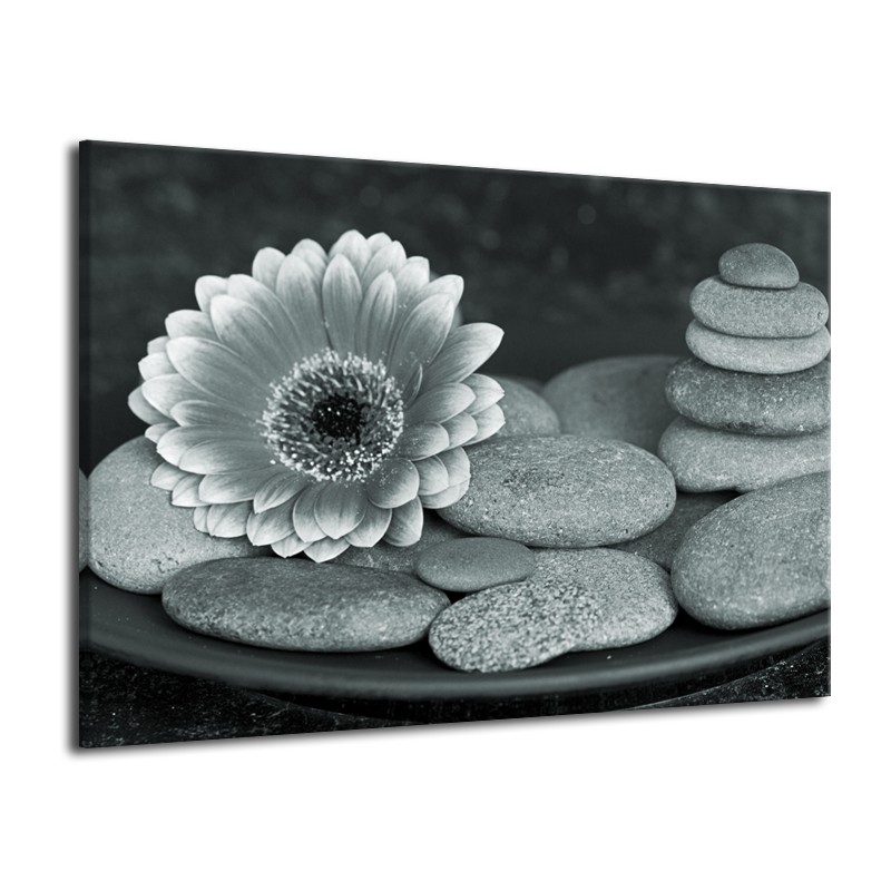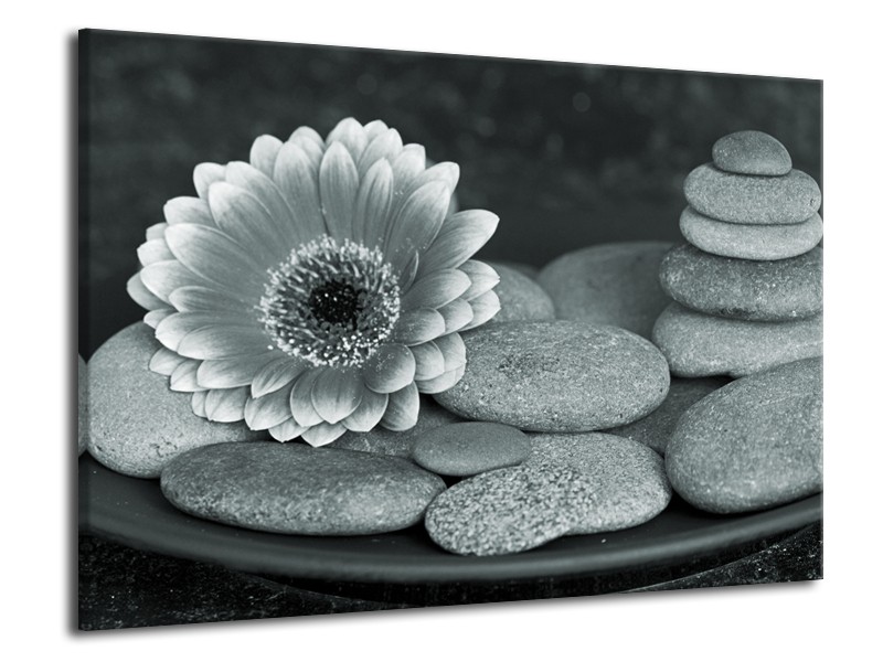 Canvas Schilderij Bloem, Stenen | Grijs, Groen, Zwart | 70x50cm 1Luik
