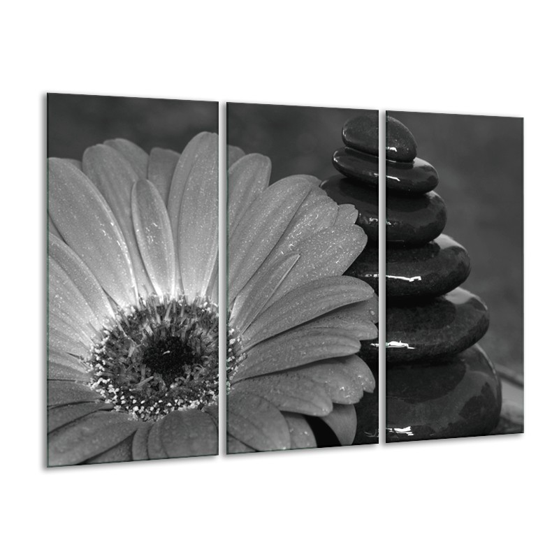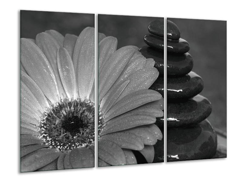 Canvas Schilderij Bloem, Stenen | Grijs, Zwart | 120x80cm 3Luik