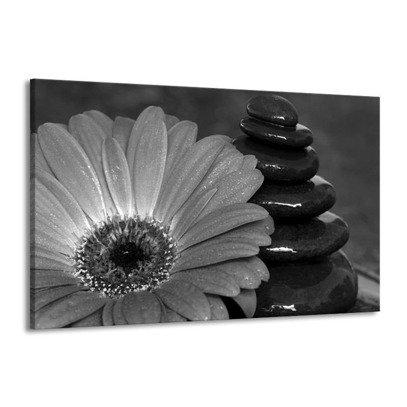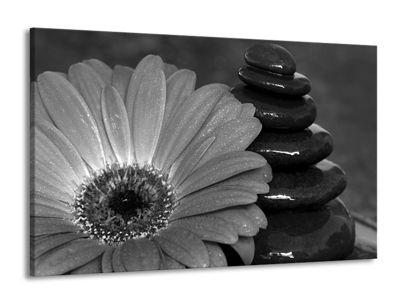 Canvas Schilderij Bloem, Stenen | Grijs, Zwart | 140x90cm 1Luik
