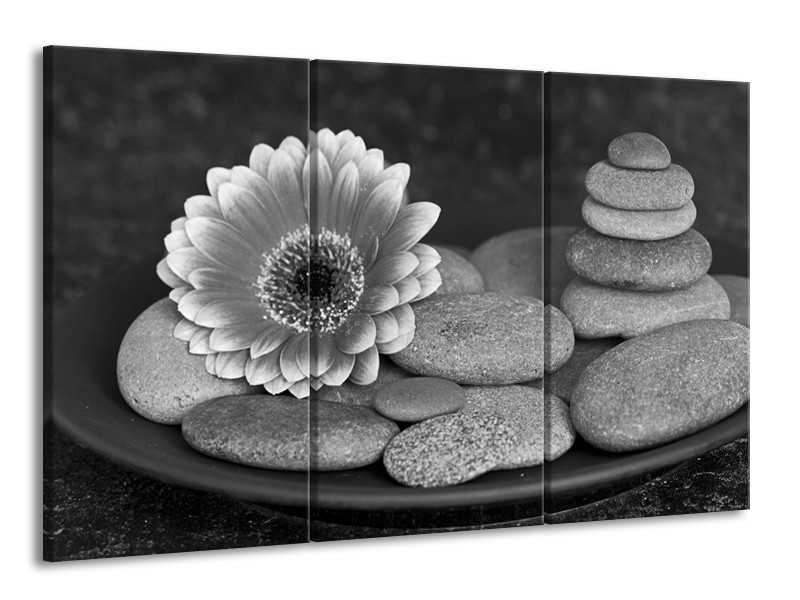 Canvas Schilderij Bloem, Stenen | Grijs, Zwart | 165x100cm 3Luik
