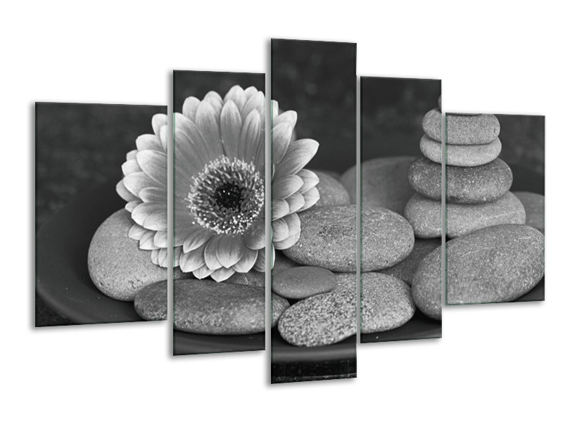 Canvas Schilderij Bloem, Stenen | Grijs, Zwart | 170x100cm 5Luik