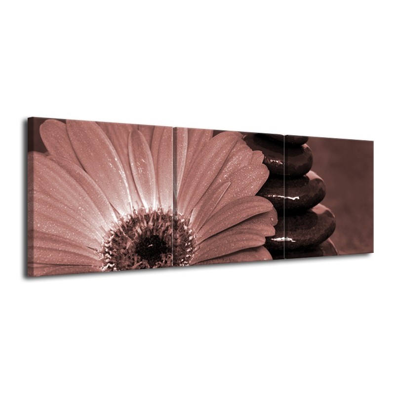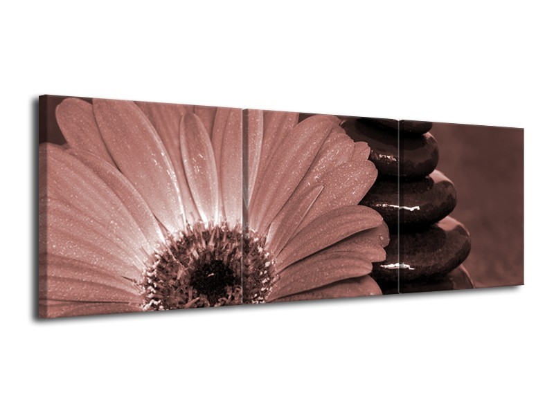 Canvas Schilderij Bloem, Stenen | Rood, Bruin | 120x40cm 3Luik