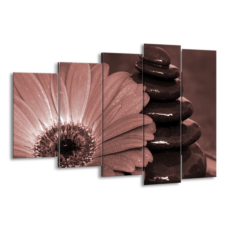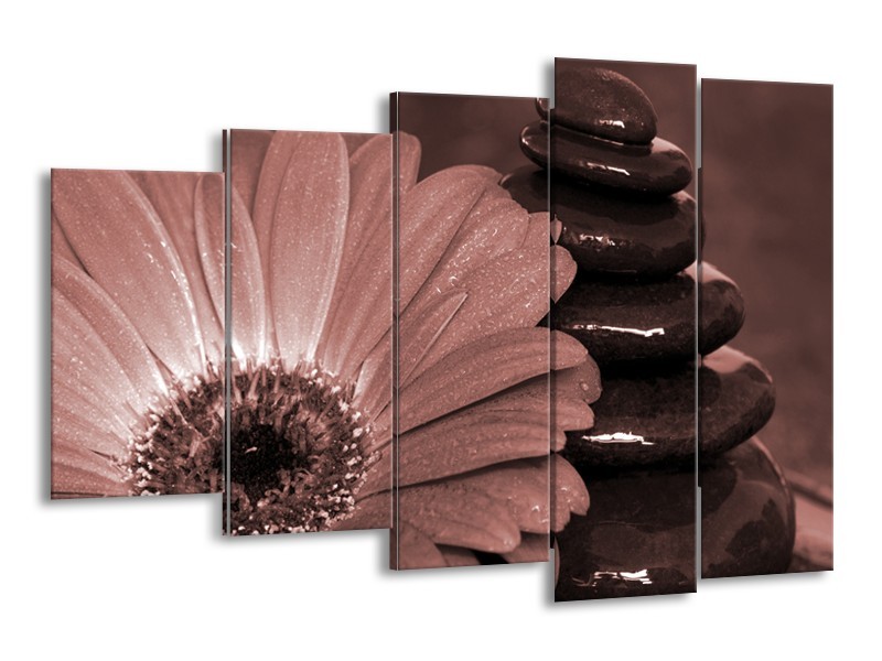 Canvas Schilderij Bloem, Stenen | Rood, Bruin | 150x100cm 5Luik