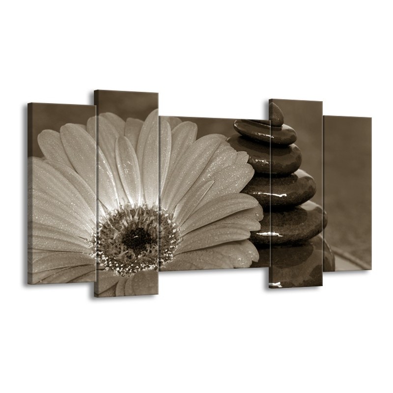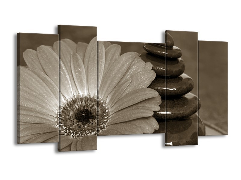 Canvas Schilderij Bloem, Stenen | Sepia | 120x65cm 5Luik