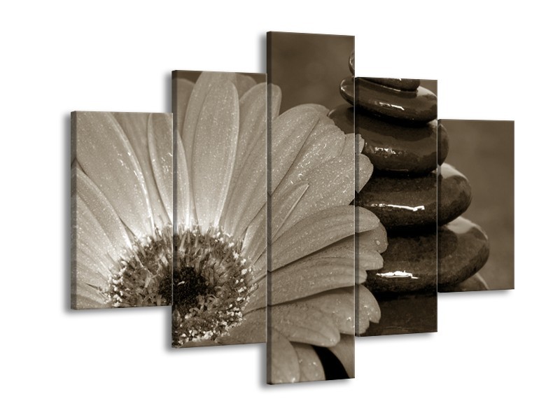 Canvas Schilderij Bloem, Stenen | Sepia | 150x105cm 5Luik