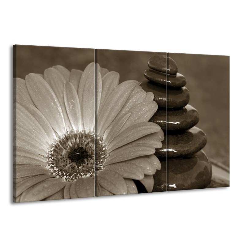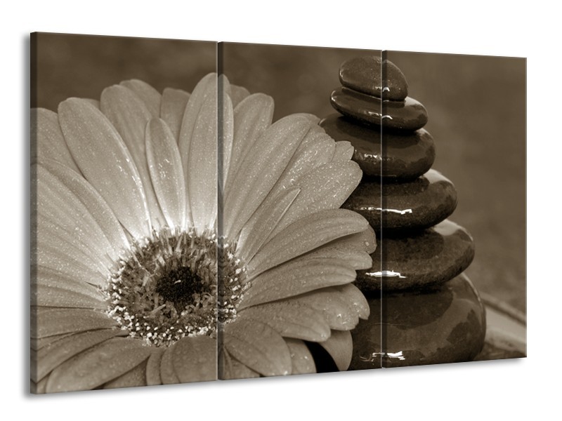 Canvas Schilderij Bloem, Stenen | Sepia | 165x100cm 3Luik