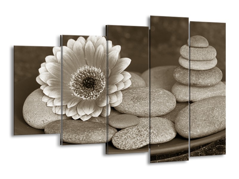 Canvas Schilderij Bloem, Stenen | Sepia, Bruin | 150x100cm 5Luik