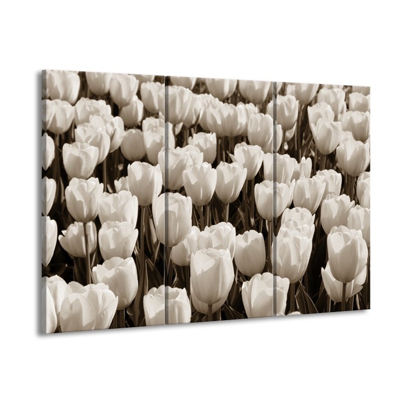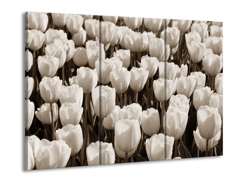 Canvas Schilderij Bloem, Tulpen | Sepia | 60x90cm 3Luik