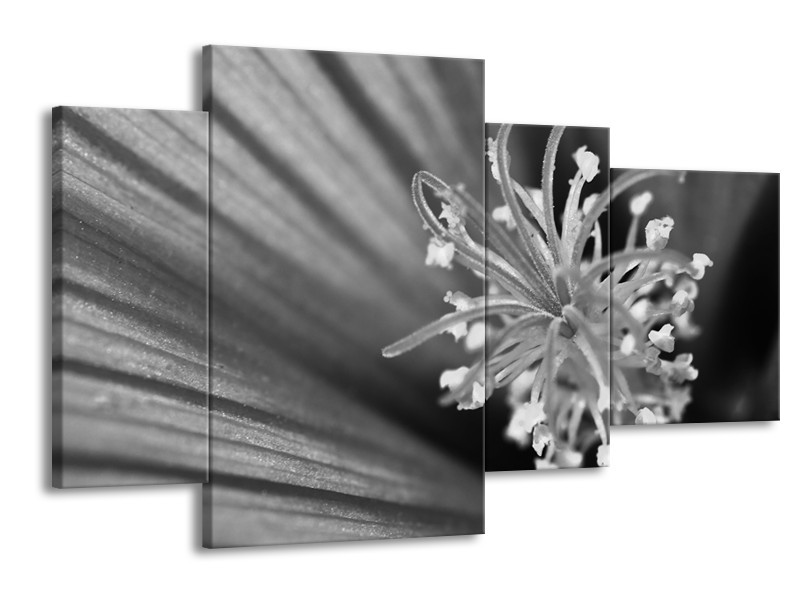 Canvas Schilderij Bloem | Zwart, Grijs, Wit | 120x75cm 4Luik